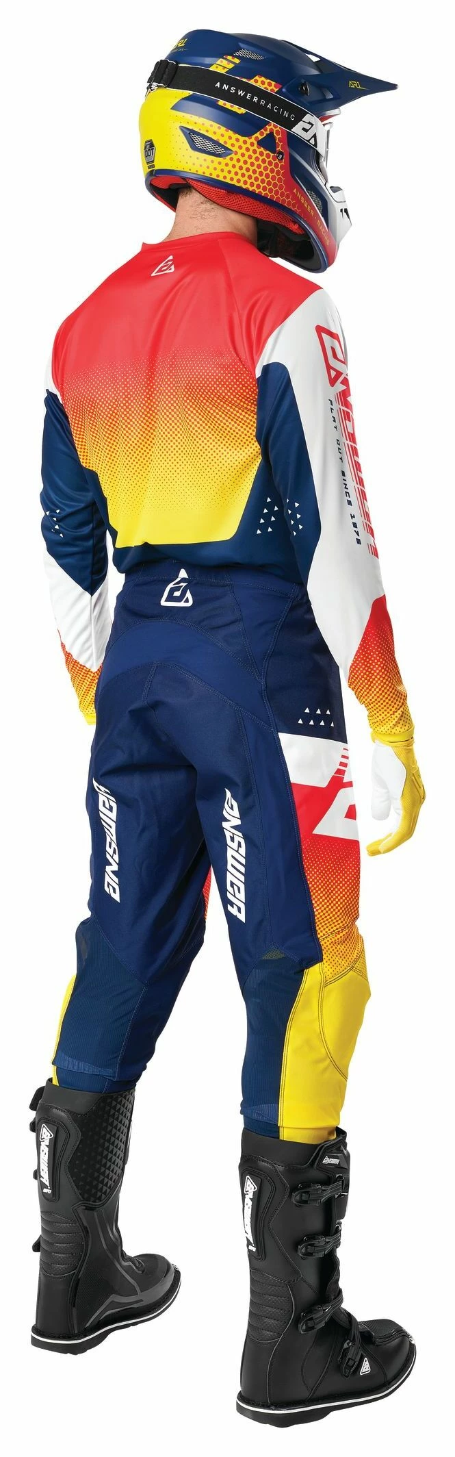 The Answer Syncron MX Gear is the perfect blend of function, style and affordability. Answer has been outfitting riders since 1976, and the Syncron line-up makes it easy to carry on the heritage of MX roots. Different combinations of nylon denier enhance durability in impact zones and increase airflow areas that receive less wear and abrasion. Four way stretch inserts enhance rider mobility.