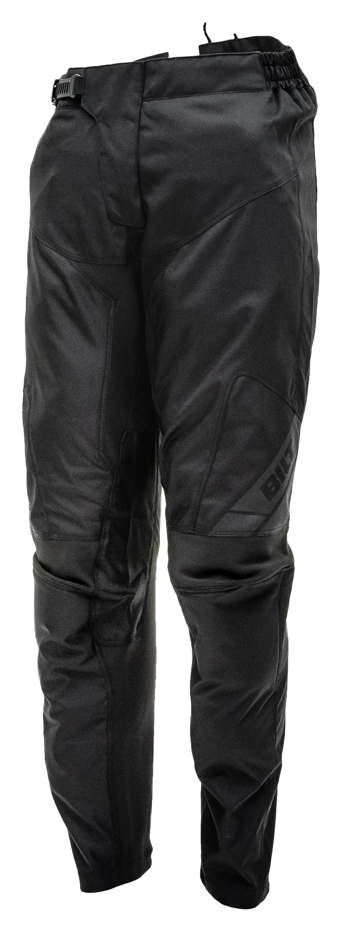 The BILT Youth Velocity MX Pants sport a heavy duty 600D nylon construction to last season after season of hardcore use and abrasion. Non-impact zones at the rear yoke and lower and inner leg are covered with an open weave stretch material for comfort and airflow. Pre-curved tailoring is cut to suit a wide range of riding positions. At the waist, riders are treated to a quick-release ratchet closure for easy adjustment on the fly. A silicon grip surface on the inner side of the waist keeps jerseys tucked and ensures the pants stay exactly where you put them. The Velocity Pants use YKK zippers and feature lightly padded knees.Â