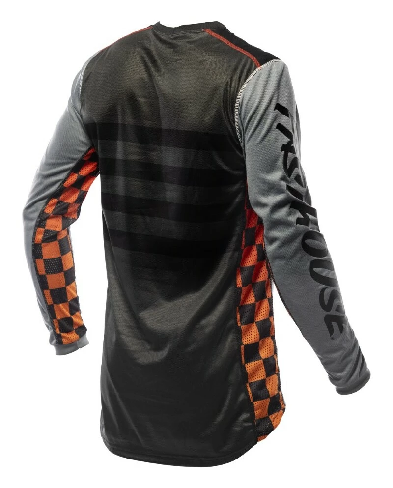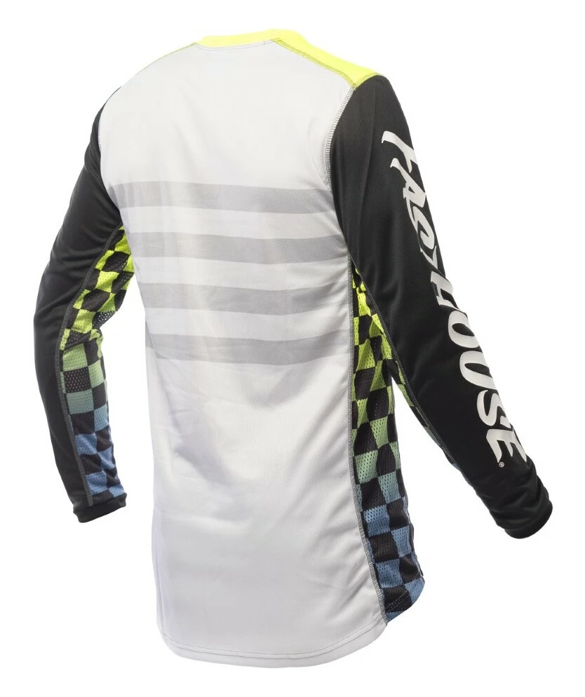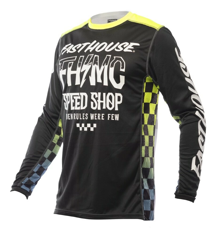 The Fasthouse Grindhouse Bute Jersey is a race day essential for any serious rider. Dyed polyester ensures that colors stay vibrant while an over locked stitching pattern gives extra strength and durability. This keeps the jersey looking as good as the day it was delivered. Moisture wicking fabric keeps riders dry all race and high quality silk screening keeps the graphics on the jersey.